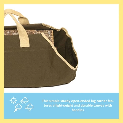 - LOG CARRIER WITH HANDLES: This simple sturdy open-ended log carrier features a lightweight and durable canvas with handles