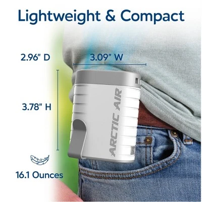 Introducing Arctic Air® Breeze Jet, the compact wearable air cooler that is designed for cooling comfort on the go! Simply clip it on your waistband or wear it around your neck to help provide a cool, refreshing breeze and help cool your body.