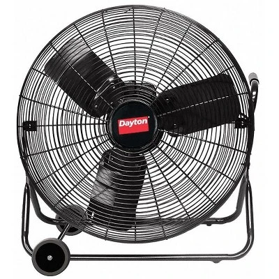 Light-Duty Quiet-Design Industrial Fan, Blade Dia. 24 in, Mobile, Non-Oscillating, 3 Speeds, Voltage 115V AC, 1 Phase, CFM High 5030, CFM Low 2280, Air Velocity @ 20 Ft. 500/350/220 fpm, Motor HP 1/4 hp, Motor RPM 1025/880/480, Operating Amps 1.8/1.5/1, Fan Mounting Location Floor, Fan Accessory Style Quiet Design, Fan RPM 1025/880/480, Max. Ambient Temp. 104 Degrees F, Hz 60 Hz, Watts 210/175/105, Motor Type Split Phase, Drive Type Direct Drive, Height 28 3/4 in, Width 27 in, Max. Depth 12 In.