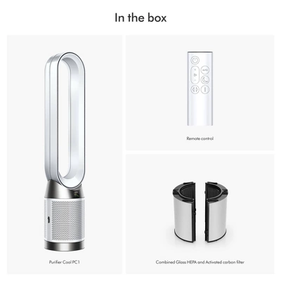 Dyson Purifier Cool PC1 delivers whole-room purification⁴ and powerful cooling.⁶ The fully sealed filter system captures 99.97% of microscopic allergens² and pollutants as small as 0.3 microns.¹ The whole purifier, not just the filtration system, is fully sealed to HEPA H13 grade.³ Air Multiplier™ technology projects over 76 gallons per second of smooth, yet powerful airflow.⁷ Connects to the MyDyson™ app to control and monitor air quality from anywhere, or hands-free with compatible voice services.⁵