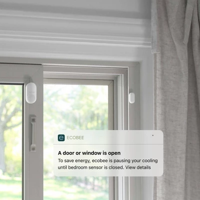 - With an ecobee Smart Security subscription, the SmartSensor for doors and windows detects if either has been open for more than 5 minutes, automatically pausing your HVAC system. Once the door or window has been closed for more than 30 seconds, the HVAC system resumes operation. This feature is compatible with ecobee smart thermostats and requires an ecobee Smart Security subscription