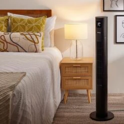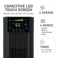 Holmes 42″ Digital Oscillating 5 Speed Tower Fan With Clear Read Display And Remote Control Black