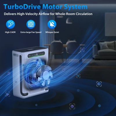 - 2. Dual Air Inlets for Superior Efficiency-High-Efficiency Coverage up to 2,600 Sq. Ft. In addition to a standard front air intake, this air purifier features ultra-wide dual side inlets. The advanced airflow design accelerates circulation and maximizes coverage, delivering fresher, cleaner air throughout your home or office