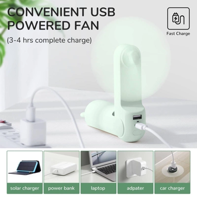 - Foldable and Compact: The folding portable fan can hide the fan blade(5.1*1.65*1.65 inch, weight: 0.4 lb) and is easy to put in the bag.
