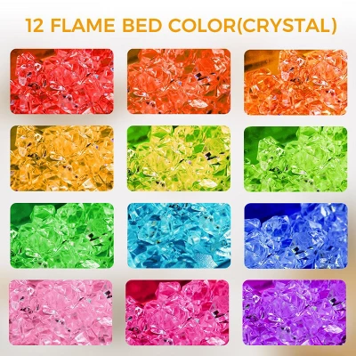 - Customizable Realistic Flames: This fireplace features authentic LED flames with customizable effects, offering ‌4 flame colors and 12 crystal bed hues—both featuring auto-gradient lighting‌. Experiment with settings to match your interior, or activate auto-mode to create a romantic ambiance.