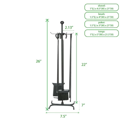 The MIND READER Fireplace Tool Set is everything you need to start and stoke your fire, keep it burning, and sweep it up when you’re done. We’ve manufactured and engineered the fire poker, fireplace broom, and fire pit shovel using high-end wrought iron and durable steel, making these bonfire accessories along with the base stand, able to endure high temperatures and resistant to bending or warping.Instantly upgrade the design aesthetic and style of any room in your house or backyard using our modern and sleek looking fire pit accessories. They’ll blend seamlessly into any setting or environment while giving you that visually pleasing, subtle but impactful boost that you and your guests will love!The MIND READER Fireplace Tool Set comes with unique and comfortable ergonomically designed handles that feel great to hold. Engineered for easy to grip use, reducing fatigue and stress on your hands and wrist no matter how long you use them. Our wrought iron fireplace tools are also easy to clean, needing only a quick wipe for it to look good as new. And don’t worry, you’ll be able to get your fire started indoors or outdoors in no time as they require zero assembly time. Enjoy outdoor campfires, fire pit bonfire parties, or relax indoors next to your fireplace by getting your very own MIND READER Fireplace Tool Set. Buy one today!