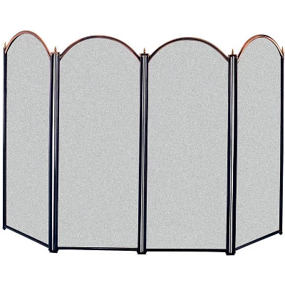With its traditional black finish and 4 panel design, Panacea fireplace screen is perfect for accommodating larger fireplaces. Adjustable side panels pivot on piano-style hinges. This screens design makes tending the fire simple and easy. Traditional styling and gracefully arched detailing, makes this screen a compliment to any decor. This panacea four panel fire screen is made to keep your home safe and warm.