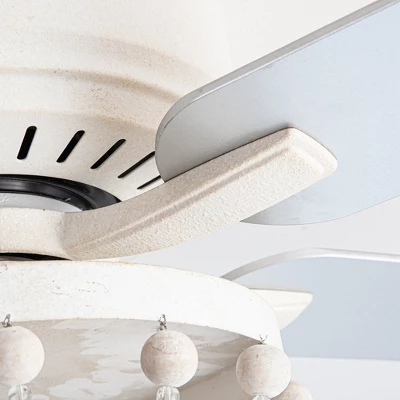 - The Farmhouse Ceiling Fan adds a touch of timeless elegance to any room with its classic design and wood bead shade