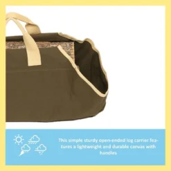 Achla Designs 21″ Arts & Craft Log Holder & Suede Carrier Roman Bronze & Brown