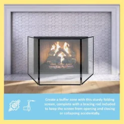 Achla Designs 88″ Large Three Fold Steel Child Fireplace Guard Black