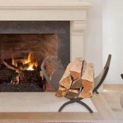 Panacea Products Steel Indoor Foldable Fireplace Log Bin, Black