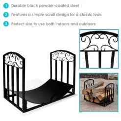 Sunnydaze Decor Sunnydaze Small Powder-Coated Steel Outdoor Firewood Log Rack – 30″ – Black