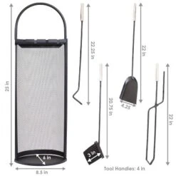 Sunnydaze Decor Sunnydaze 4pc Fireplace Tool Set With Mesh Shroud Holder – Black
