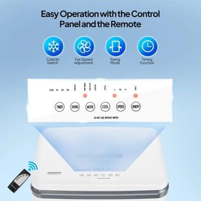 - 【Remote & Top Control Panel】All the functions are operated by the panel on device top or the remote control. When you are lying in chair, just point the remote control to adjust the wind mode & speed. Three fan speeds and 12 hours timer settings to easily customize your ideal mode. This Air Cooler can be used after being unpackaged, only needed to assemble 4 casters