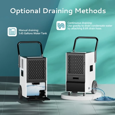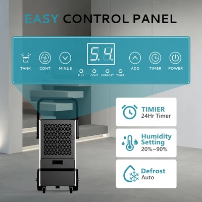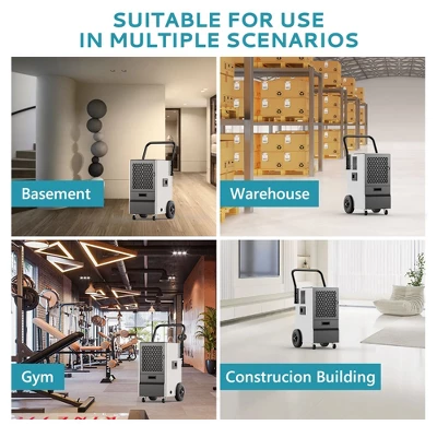 - WIDE APPLICATION: Equipped with a convenient push-pull handle and four wheels, this dehumidifier is easy to transport and move. Perfect for use in high-humidity areas such as basements, warehouses, cellars, workshops, and large homes, it provides versatile moisture control for any environment.