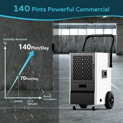 - COMMERCIAL DEHUMIDIFIER: Removes up to 160 pints of moisture per day, making it ideal for large spaces up to 7,000 sq. ft. Its powerful compressor and high airflow rate ensure fast and efficient moisture removal, even in challenging environments like basements and warehouses.