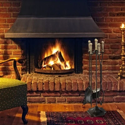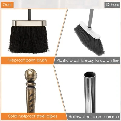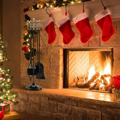- CLASSIC FIREPLACE 5 PIECE KIT: The practical 5-piece fireplace tool set includes a base with 4 hooks, a poker, a shovel, a broom and a tongs. This set of fireplace tools is the perfect addition to any fireplace for the everyday needs of a family.