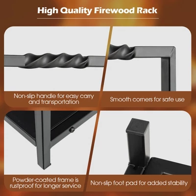 - Heavy-duty Steel Construction: This firewood rack adopts sturdy steel frame and non-slip foot pads,which ensure excellent durability and stability. With black powder coating for rust & weather resistance,the log stand can be used indoors and outdoors without special maintenance.