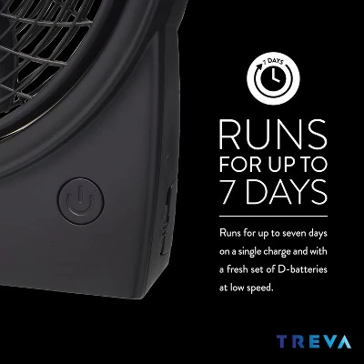 - STAY COOL UP TO 7 DAYS: This battery powered fan keeps you cool for up to 7 days on a single charge with fresh D batteries, a must add for your camping essentials or hurricane preparedness items.