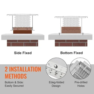 2 Installation Methods: The square base chimney cap offers two installation options: side mounting and bottom mounting. It can easily adapt to different types of chimneys. It features pre-drilled holes and a simple 4-step installation process, making it worry-free even for beginners.