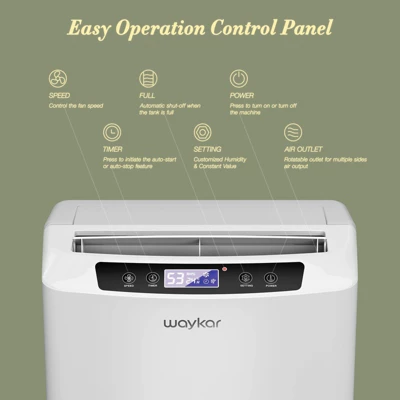 The Waykar dehumidifier is perfectly suited for areas up to 2,000 square feet, effectively maintaining ideal humidity levels to enhance air quality. Its modern design is complemented by intelligent features that ensure easy operation and maximum comfort in any space. This unit is not only user-friendly but also highly efficient, making it an excellent choice for those seeking to improve their indoor environment with minimal effort.